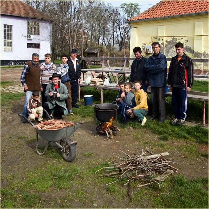 "Spremijo" je izmeđ' "četirsto" i "pecto" jaja, pa "ondak" rakije, soka, piva, vina i sveg' ostalog', kako to neki "kažedu", za - široke narodne mase, na "rukometni teren" u "center" sela...
