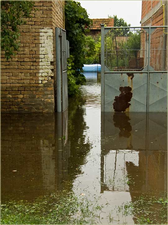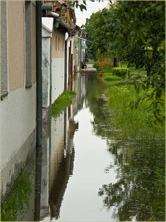 Opis: Moramo se "osvrniti" na kiše koje su padale zadnji' dana. Naslovna fotografija Vam je već poznata - kuća izmeđ' "Glavne" karlovačke i S. Miletića...