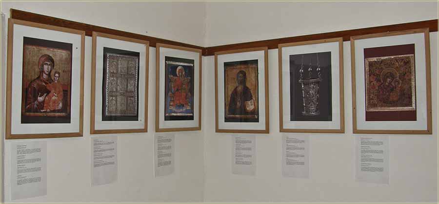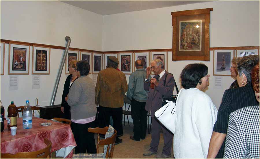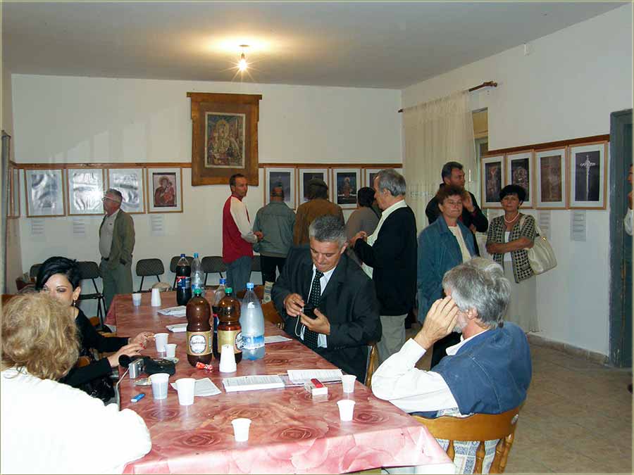 ..., da bi se posla tog' "nastavijo" u službene prostorije hrama, "di" je Istorijski arhiv iz "Bečkereka, priredijo" izložbu fotografija - Srpska crkvena umetnička zbirka iz Sent Andreje, koju je otvorila "diriktorka" Nada Boroš...