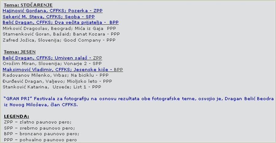 Sve fotografije, nastale na "teritoriju" Novog Miloševa..., su dobre fotografije !!! SLIKE DANA DODATAK: - deo kataloga izložbe Paunovo "pere" 2010-te, "sas komplektnim" rezultatima, možete "viditi", AKO KLIKNETE "ÓDENA"...
