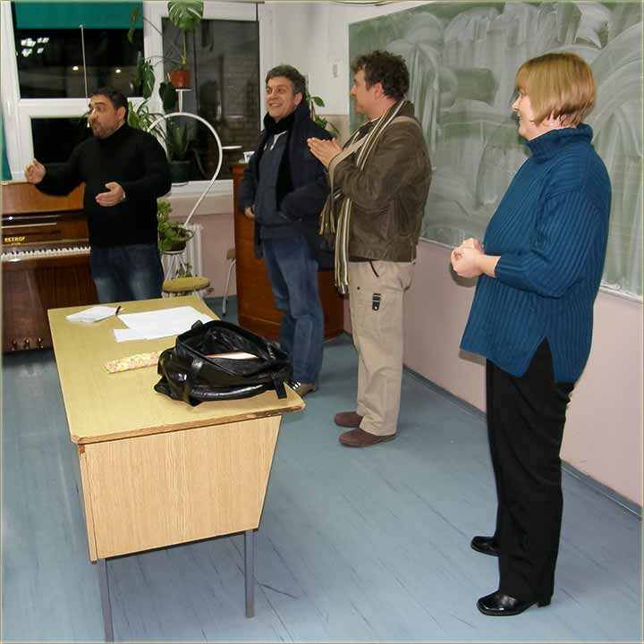 "ObJastnili" smo im, da je većina tog', što se tiče sela urađeno i "izFinancirano", iz "sredctava" Mesnog samodoprinosa, te da nam sledi referendum za naredni "perijod ot" pet godina, "naŠta" su nas "poFaili" i "poŽelili uspeštan" ishod !!!"Posla divana", sledila je poseta u "muzički kabinet, di" je "nastanica" Danijela Vrebalov, imala probu pomenutog, školskog hora...