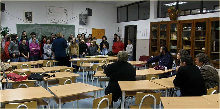 Pošto je "diriktor predctavijo" goste, đaci su "izišli prid" školsku tablu...
