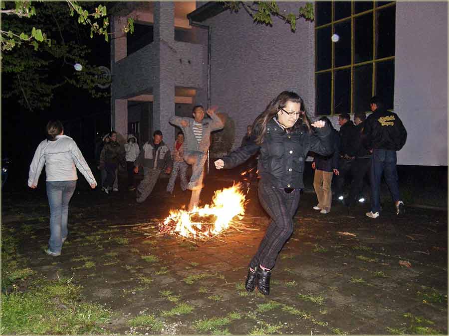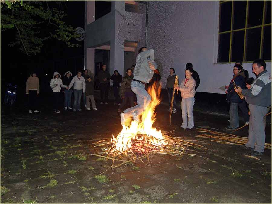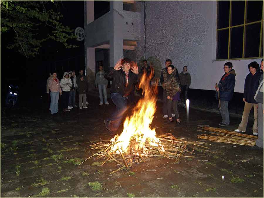 To veče je "poMalko" padala kišica, no ipak, nije bila tako jaka. Članovi USFV ( Udruženja Seoskog "Falklora" Veterana... ) Teodor Pavlović, su prvi put ove godine, za Lazarícu vatru raspalili "isprid" novi' prostorija, to jest Omladinskog doma, koji im je dat na raspologanje, a što smo Vas obavestili kroz tri NM Slike dana, počevu "ot": 09.04.2011-te...