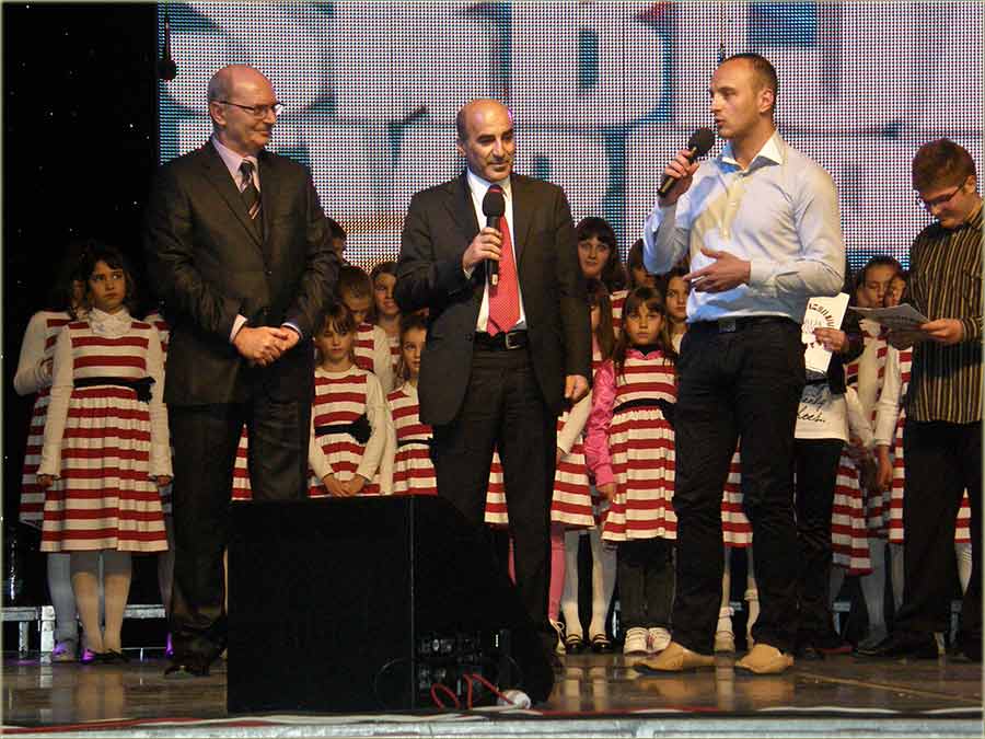 Skup je "poZdravijo" ambasador Kipra, Njegova ekselencija Haralamos Hadžisavas ( u "srédi"... ), "kav" i "precenik kikindcke obštine", Ilija Vojinović ( "naSliku sas" leve strane... )...