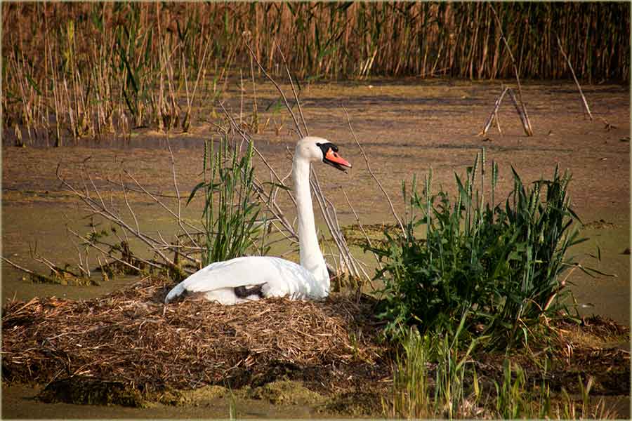 Na "naslovnu fotografiju" je labudica u "gnjizdo" i ona "neMrda" odatle, a labud "zaSad špacira" po okolini...