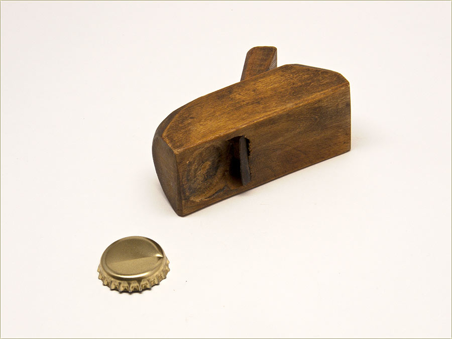 Iza onog, da tako kažemo drvenog čepa je metalna ploča, koja je "dolena" naoštrena i čija oštrica je "malko starija", tik ispod "tabane", pa za tol'ko, kol'ko je "starija", fino "rendiše" površinu drveta...