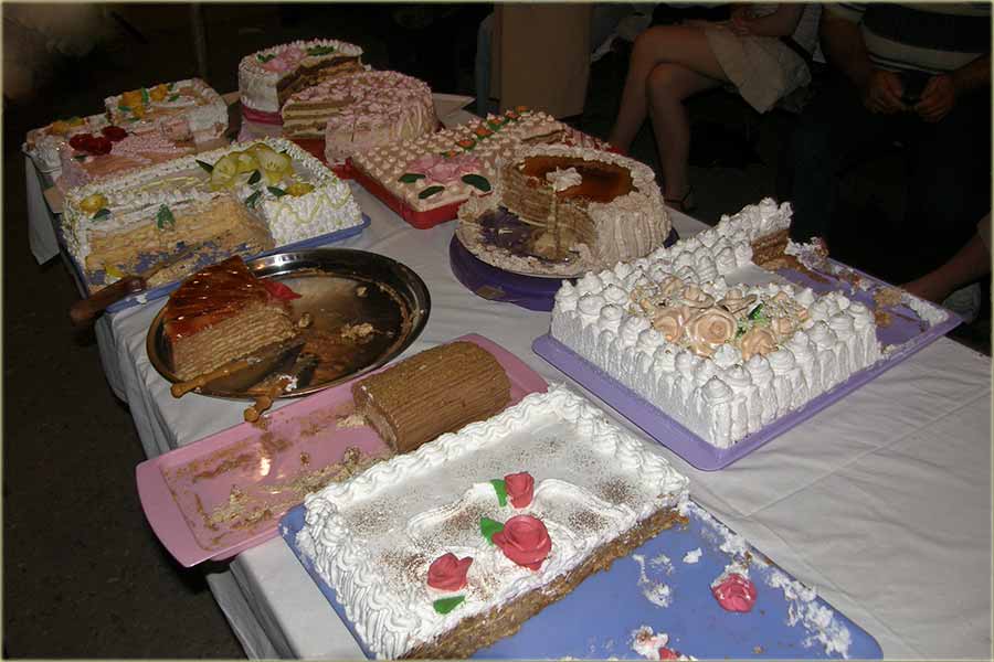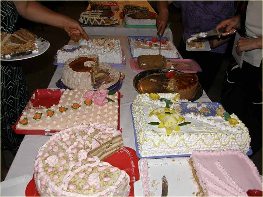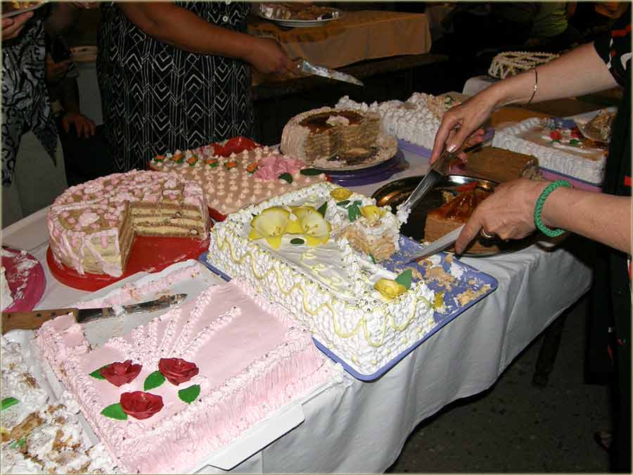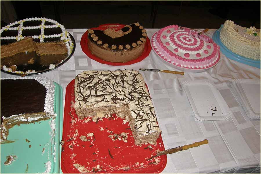 Do posluženja, torte se "smešćadu digođ" u "posebnu, ladnu" i tamnu prostoriju, a u novije vreme u "onaj kamijon ladnjaču, di" se i piće 'ladi...