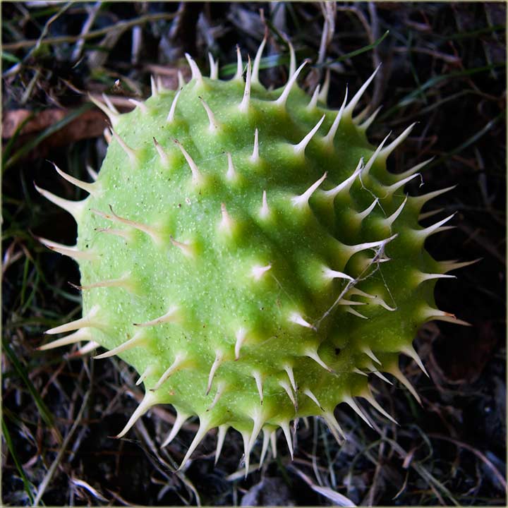 Plod "divijog" kestena je već "naoružat" i preti "sas" bodljama, ako nekom padne "sDrveta" na ćélu il' razdeljak...