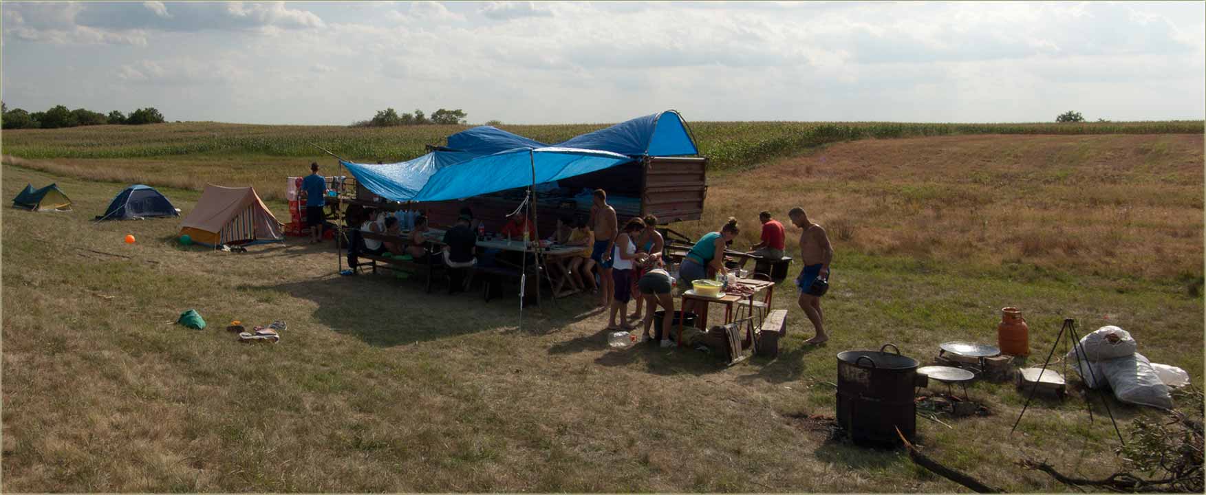 Na "panoramu" možete uočiti dve bitne stvari: prva je plastična, plava nastrešnica iznad prikolice i "astala"...