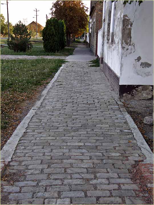 "Skoro" nije bilo tak'og čuđenja "Milošefčana, kav" što je to bilo "uZadnji" nekol'ko dana, kad' je o "trošak" Mesne zajednice, izvađen "zdrav" i čitav "flaster" od "cigalja" i "naMesto" njega "udaren" nov, "novcijat" beton, a na "Glavnu karlovačku, sas sunčane strane", izmeđ' "sokaka" M. Pajić i S. Miletića !?!