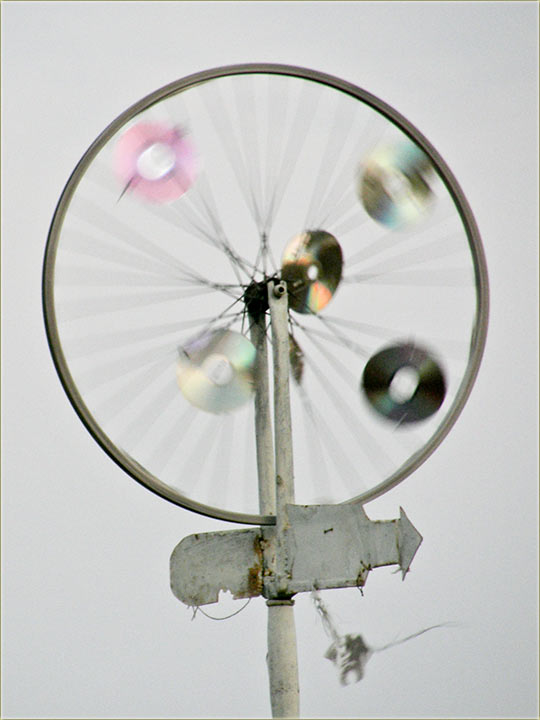 Na "sledeću spravu CD-ejovi" i "DVD-ejovi, imadu" dvostruku "fukciju". Pošto su zaglavljeni međ' "špice" točka od "bicikla", pravidu otpor vetru i tako ga "okrećedu", praveći "priTom" još jače svetlosne efekte !!!