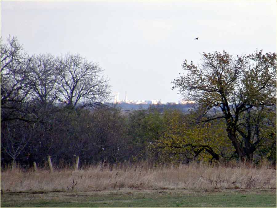 ..., a nekako "Kikindcka mlina" je najdalje ( onaj jedini svetli "objekat, poSred orizonta"... ), što se tiče te varoši, al' se ipak vidi !!!