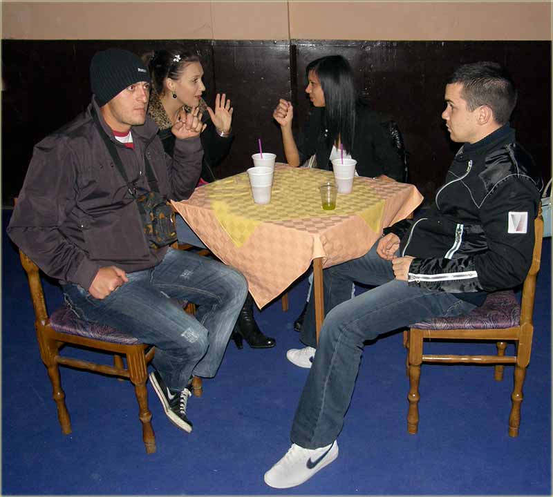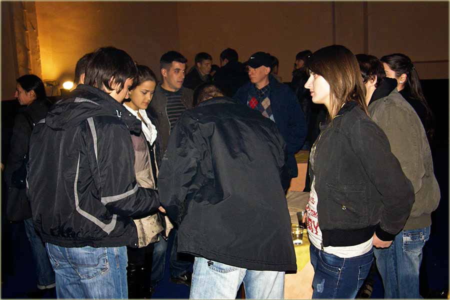 Opis: Omladinski dom su u "petek" uveče, krasile plavo-žute "farbe", jer je "Demokratcka" stranka imala žurku članova i simpatizera "izNaše obštine"...