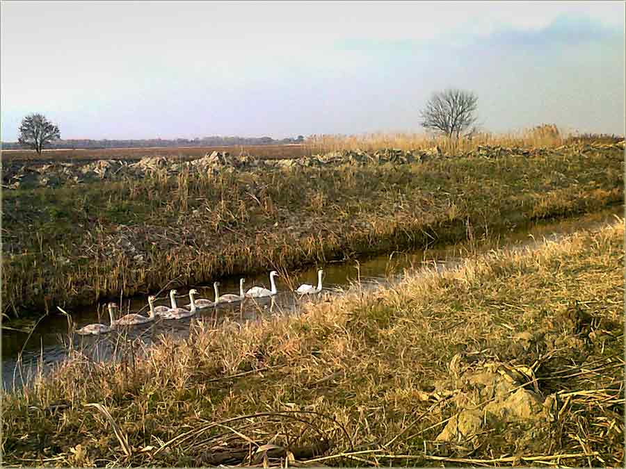 Alo Babo..., ja sam "uRit"..., na bekešov kanal pecam..., a "malko" dalje su labudovi..., tri velika i šes' mali'..., dođi da i' "uSlikaš" !!! Aaav..., Šinjorko..., "neMogu"..., na "sastanak" sam... Šteta..., znaš kako su lepi !!! E..., pa "slikaj" i' ti, "sas" tvojim mobilnim !!! Al' neće biti tako lepe slike... Nek' i "neBidnedu"..., bolje ikakve, neg' nikakve !!! Dobro !!! I tako i' je on "uSliko" i u "subatu" mi je don'o "slike"...