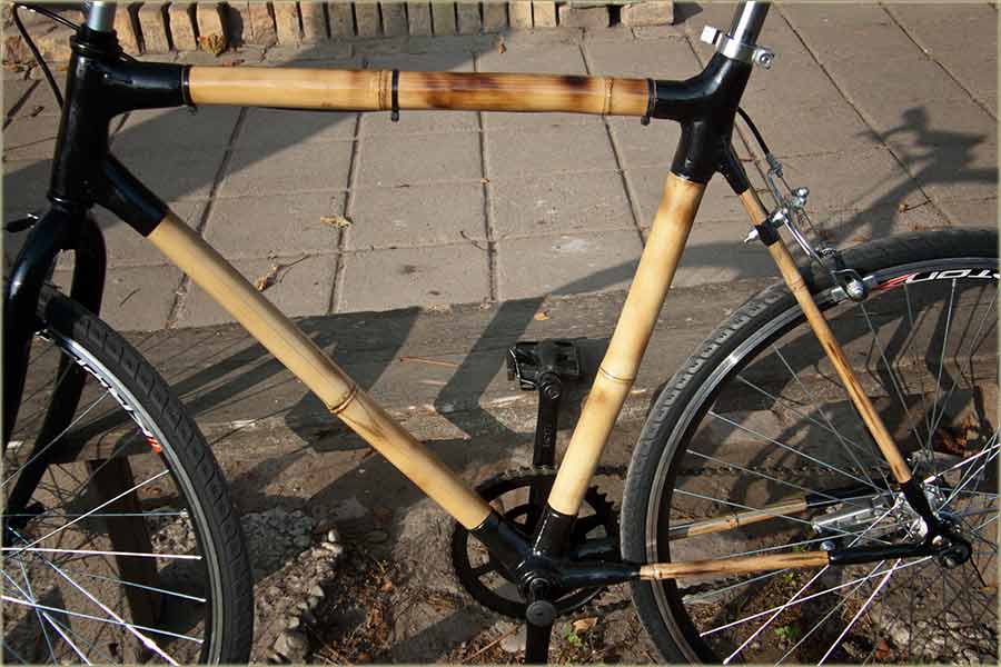 Opis: Ako na brzinu "poGlêdite bicikli saSlike", teško da bi primetili ikakvu razliku "spreću" ostali', no, ako to uradite pažljivije, "vidićete", da mu je ram napra'ljen od bambusa...