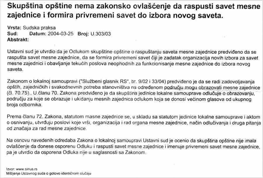Mesnu zajednicu, može da "naPravi" i "ukine", jedino "Skubština obštine" i niko drugi i sve nadležnosti nad "Mesnu zajednicu", ima samo i jedino samo "Skubština obštine" i niko drugi !!!
