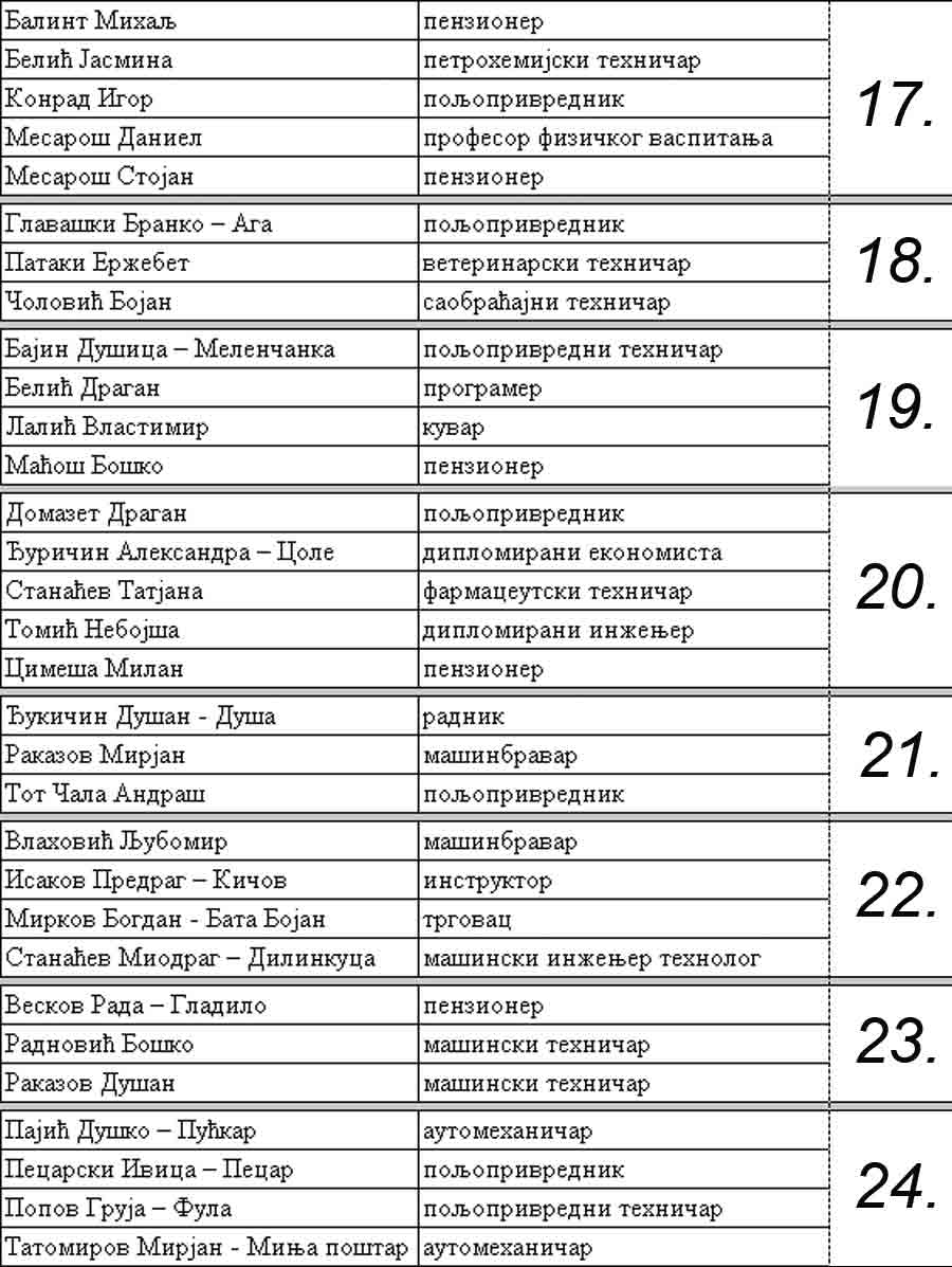 Važno je da znate, da se na "svako biračko mesto", glasa za dva kandidata, osim na "biračko mesto" broj sedamnajst" ( kod Šena... ), "di" se glasa za tri kandidata i to "zaOkruživanjom" rednog broja, "isprid" prezimena i imena kandidata !!!
