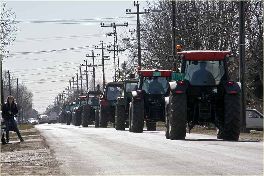 Opis: "Jučeraske" su naši "paori", napravili protestnu vožnju "sas" traktorima, kroz "sokake" novomiloševačke...