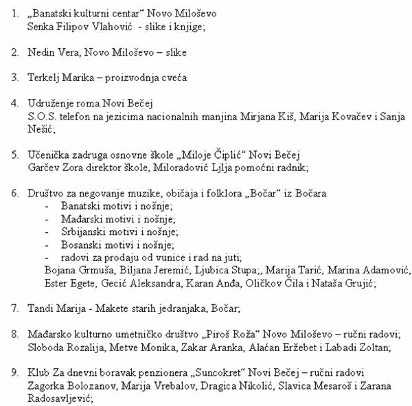 Opis: "Kav" što smo Vam i najavili, u "subatu" je, "kodNas" u "Miloševo", prvi put "obdržan", da tako kažemo, sajam "žemskog" stvaralaštva "obštine" Novi Bečej !!!