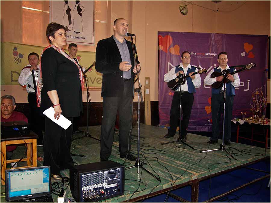 Kad' su "dočekati" svi gosti i "učestnici", poč'o je "zvaničan" deo programa, kog' je vodila, a ko bi drugi, neg', mi "Milošefčani" kažemo - naša Slađana Slađa Đorđijev, "ijAko" je iz Novog Bečeja, "diriktorka" i voditeljka "Radijo" Novog Bečeja...