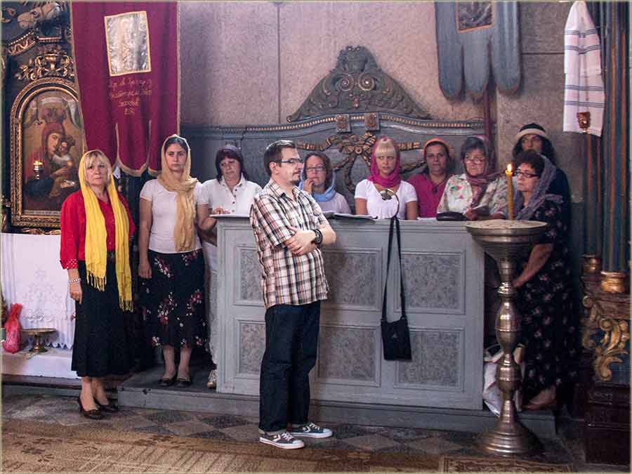 Liturgiju je "pratijo" hor Mironosice, iz "Bečkereka", a "kojim" je dirigov'o prof. Garijel Vujadinov, čiji je "pranDeda" Živa, "bijo" dugogodišnji pojac u ovu "crkvu, negdi Prvog" i "Drugog" rata...