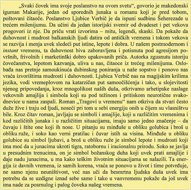 Ljubica ima novu knjigu, čiju naslovnu stranu vidite, a "zove" se - Tragovi u vremenu...