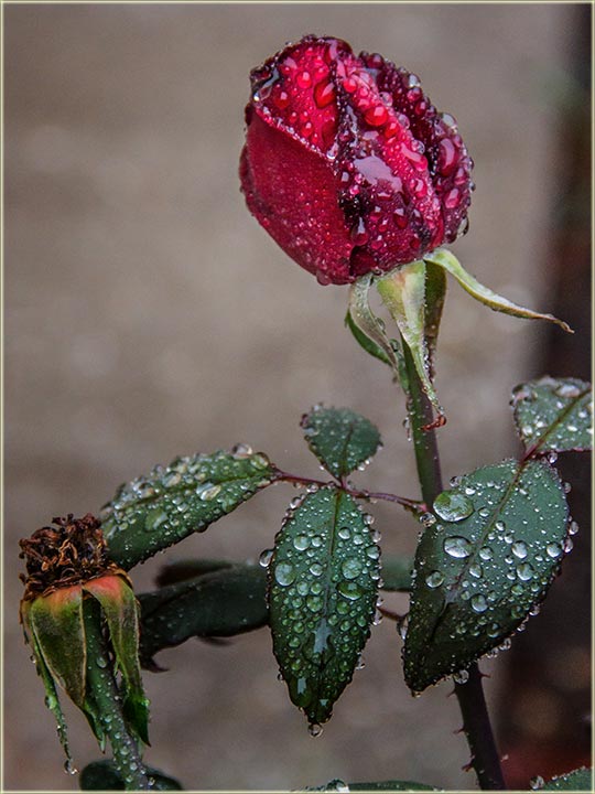 Kad' tako pada, "ondak" su cvećke lepe za slikanje, jer se sitne kapi "lagâno skupljadu" u sve veće i veće, što dâje posebne oblike, pa samim tim' "najstajedu zaOko" lepe slike...