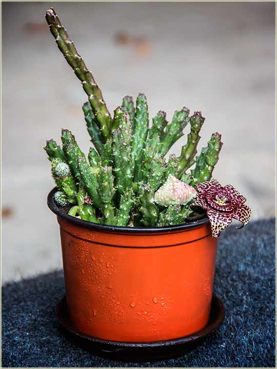 Šta ? "Di" si "uSliko" - strvosmrad ? Ti znaš kako se zove ovaj kaktus ?!? Nije kaktus..., pripada porodici - sukulenata..., a u narodu su ga "proZvali" - strvosmrad, jer kad' cveta, privlači muve i ostale insekte, koji "polažedu" jaja njega, pa ga "uTaj perijod" treba izbegavati i držati napolje..., zbog karakterističnog, neprijatnog mirisa... Eto..., a oni "bečkerečki" cvećâri - veze "nemadu" !!!