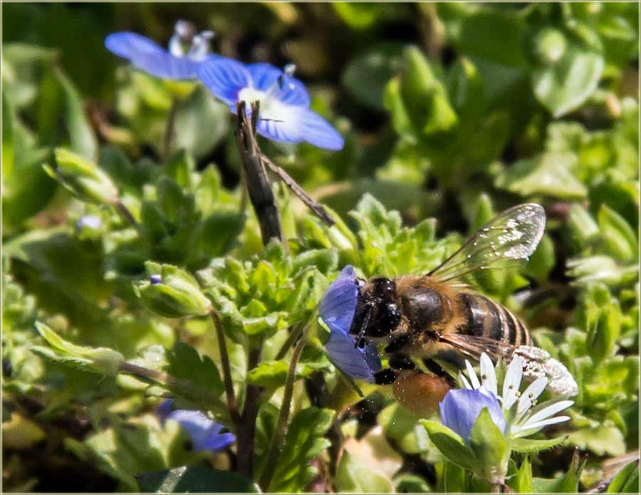 Opis: Najzad, "posla" ko zna kol'ko dana, je sinulo "Cunce" i naravno, 'oma' su se i pčele "razLetile" po njinu 'rânu, a i da "oPrašidu cvetove" !!!