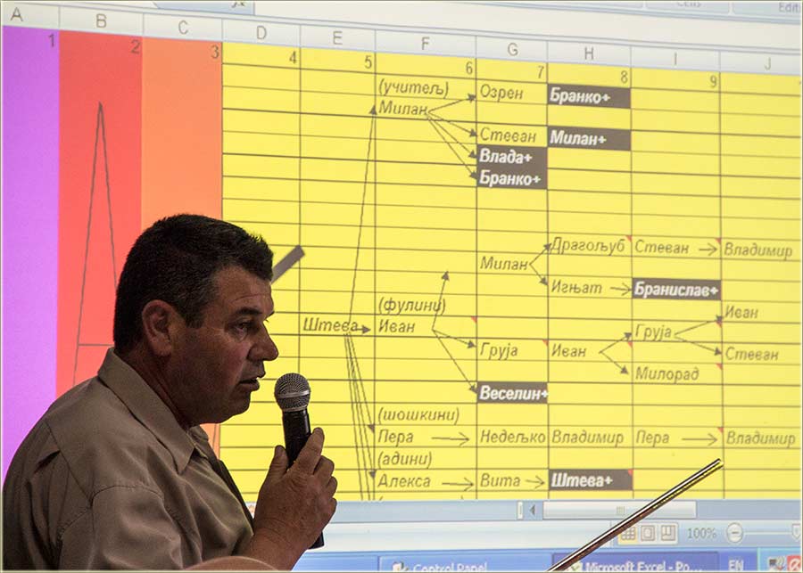 E, "ondak" je reč "dobijo" Gruja Popov ( od Fulini'... ), koji je najdalje "očo", što se tiče Duda, to jest', Porodičnog stabla te familije, koji je prisutnim, "priko" video-bima, prezentov'o poreklo ( njega ćemo svakako "jedared zvati", da nam "ôdena" to isto pokaže... ) ...