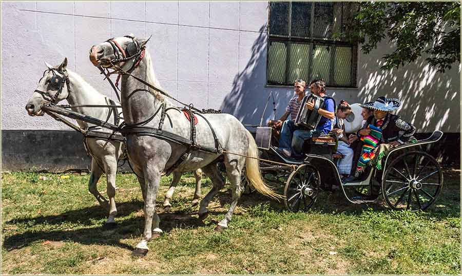 Iza Omladinskog doma, su i' čekale dvoje karûca, od koji' su "Mušicina" bila određena za dâme, "sas" Kumom i Pućkarom, uz Acu "svirca"...
