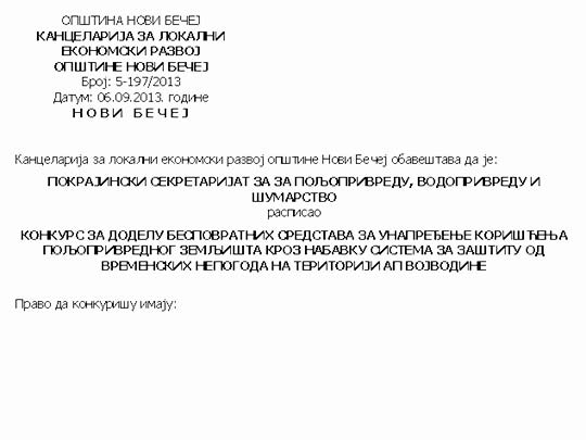 Mala digresija,a velika pomoć onima koji hoće da pogledaju pomenuti tekst. Otvorite sajt Kancelarije za lokalni ekonomski razvoj Novi Bečej i ,eto rešenja,samo zainteresovani neka krenu da prikupljaju papire.Inače,momak koji radi u LER-u je studiozan,pouzdani što je još vašnije,predusretljiv a ne kao ovo danas plasirano opet kao večto traženje tuđih grešaka.Pomozi Bože,neznaju šta rade.Prijatno i navalite na ironisanje