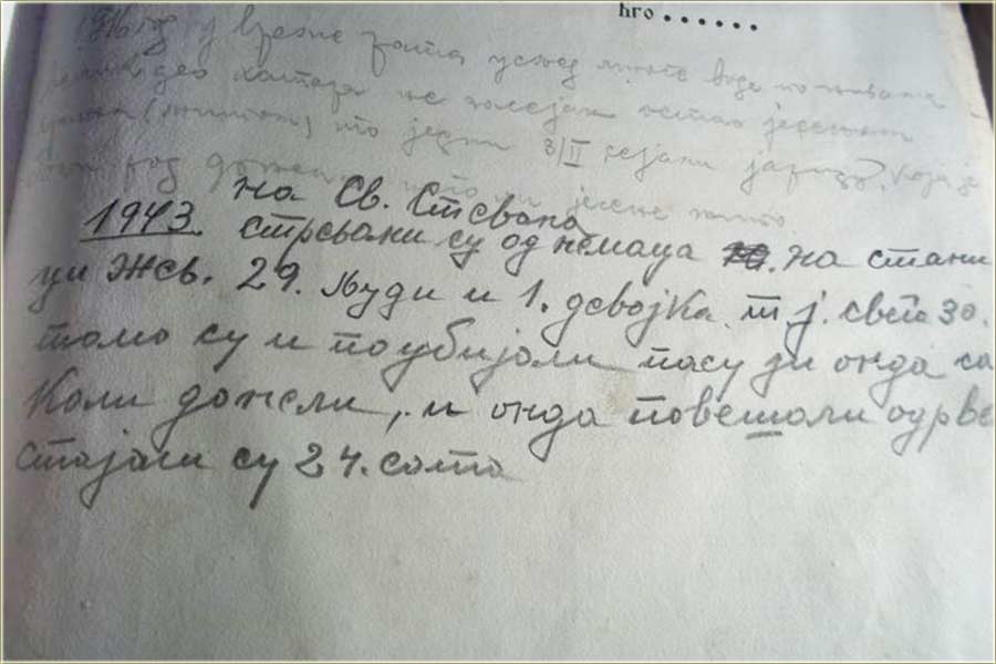 Svaki čo'ek je ne procenjivo i ne ponovljivo biće. Mi smo zdravo mlogo divni, mladi, stari, pametni, nevini i..., ljudi izgibili u raznim ratovima. Tako su jedared uDrugom svetskom ratu Nemci z'ustvili voz blizu željezničke stanice i sve prisutne izveli napolje i o'ma tu nuz prugu streljali. Razlog za streljanje je bio samo da bi se narod zastrašio i da bi se pokazalo ko vodi glavnu reč. Tada je streljano trides't ljudi. Odnosno 29 muškaraca i 1 žena.