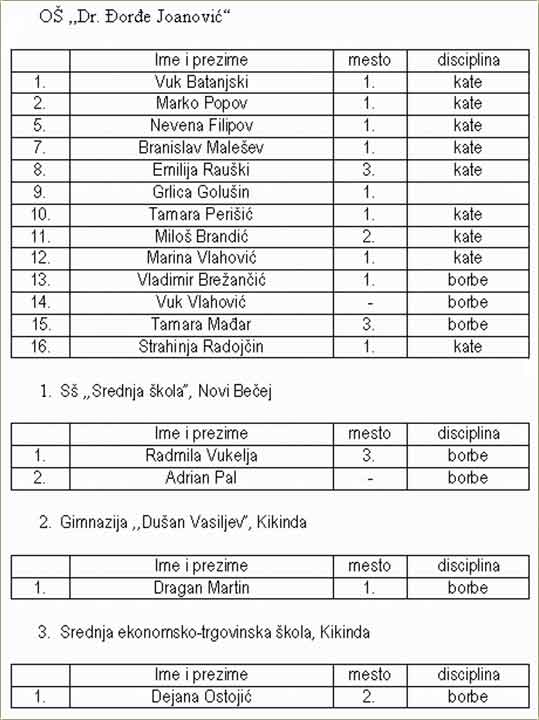 Iz našeg kluba su se takmičili sledeći takmičari:
