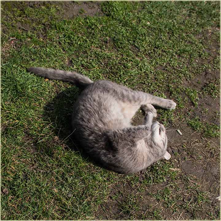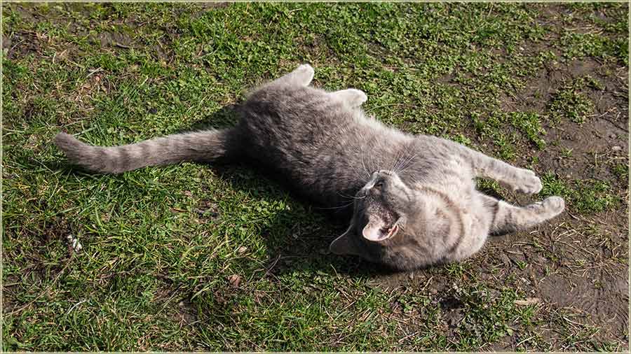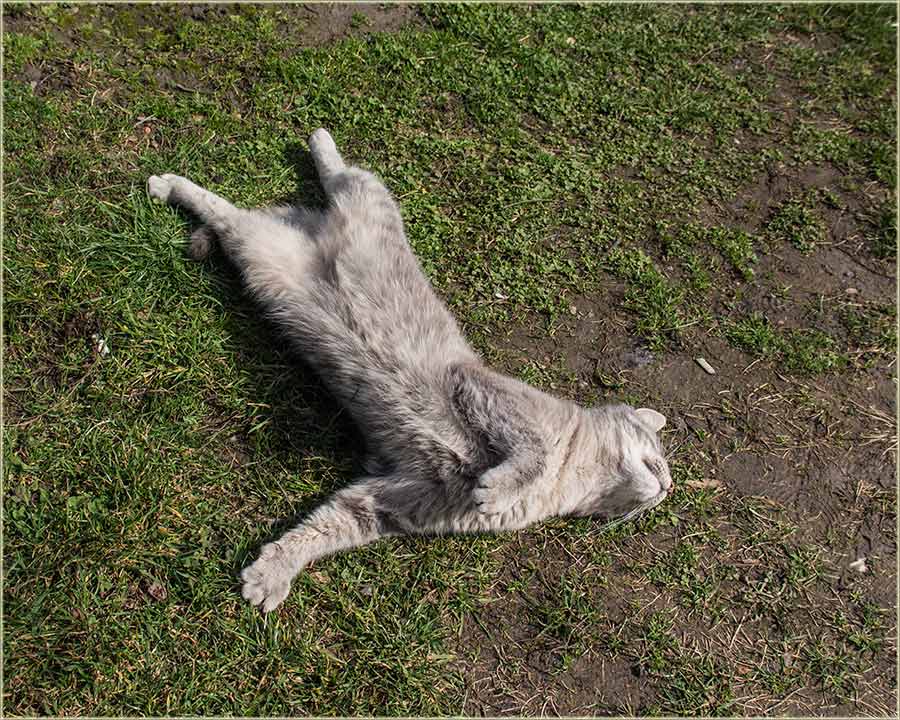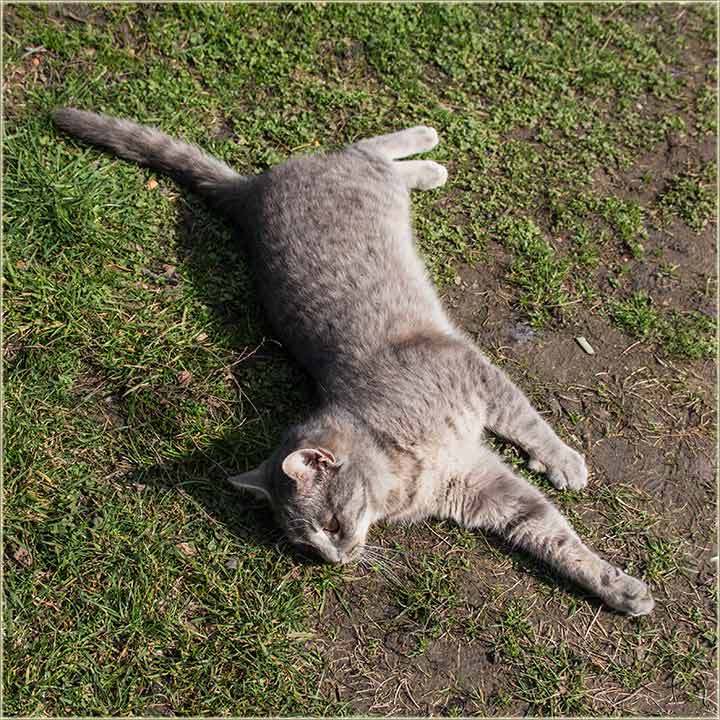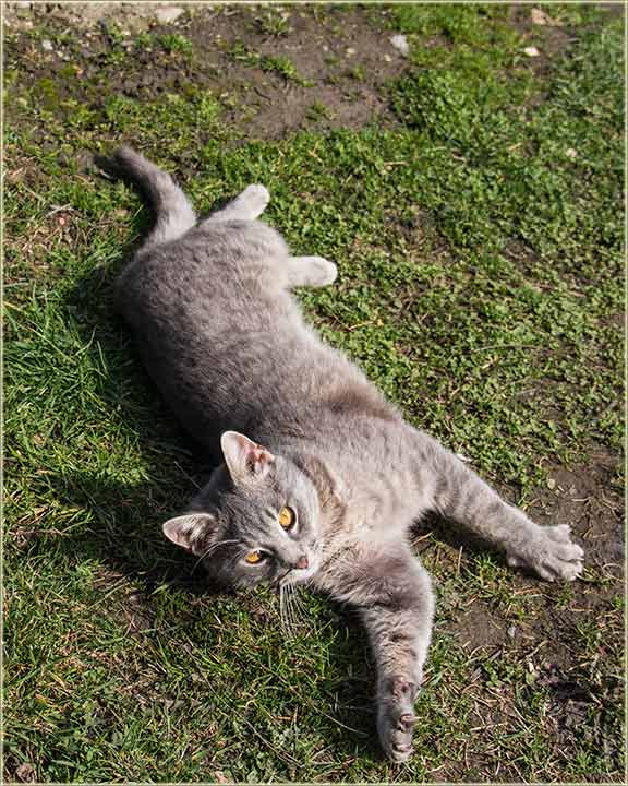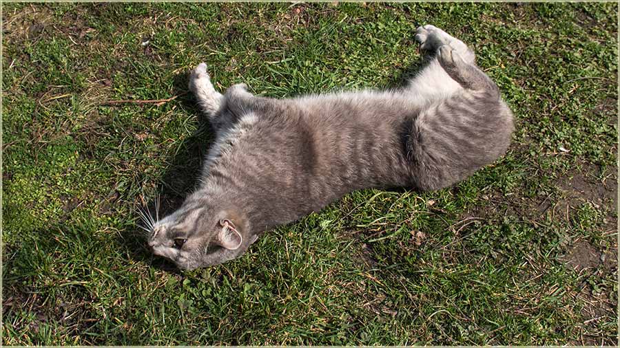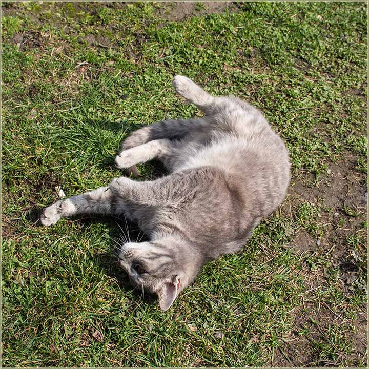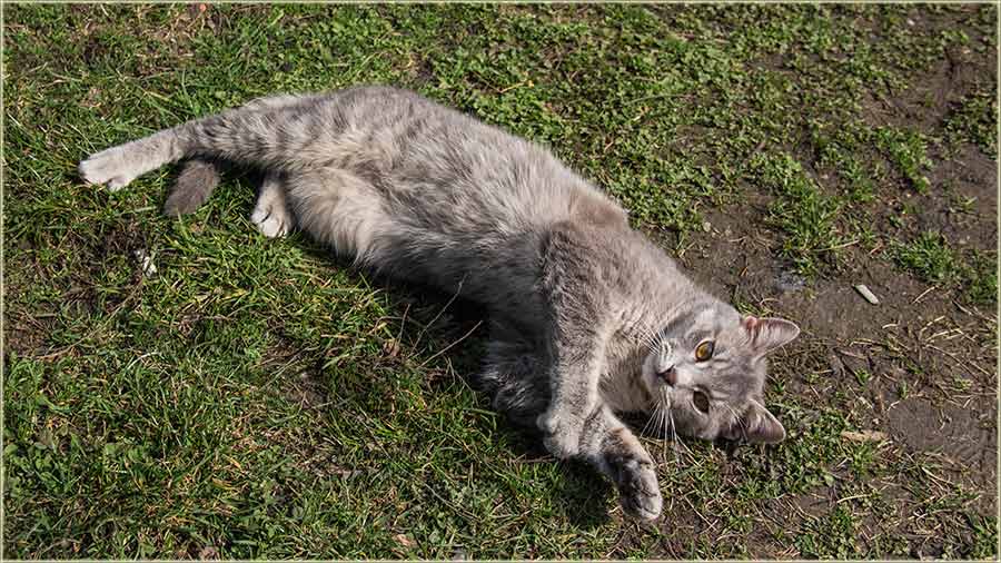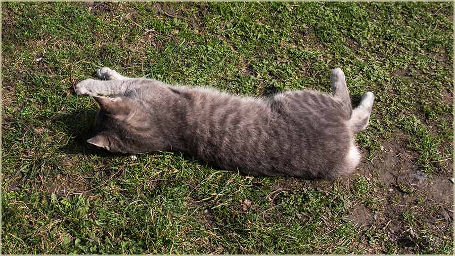 E, kad' u proleće "udari Cunce, ondak voledu" da se "izležavadu diGuđ" u "avliju", pa evo da vidite, kako to radi, jedan naš, novomiloševački mačak...