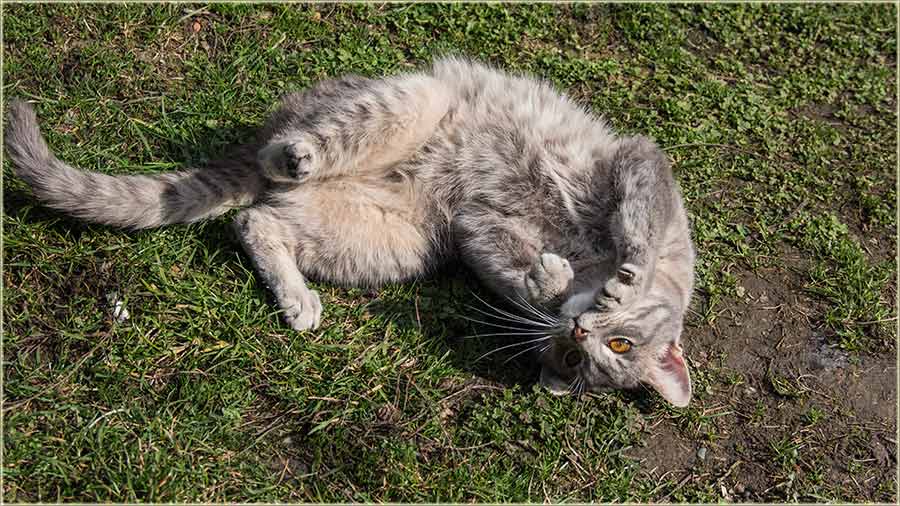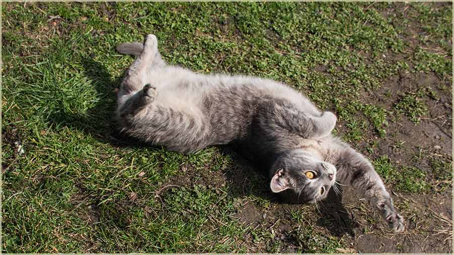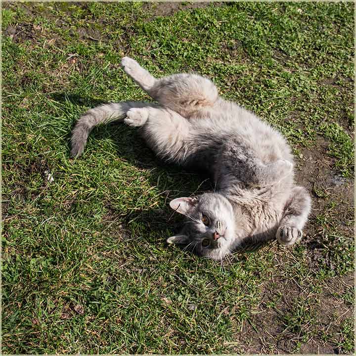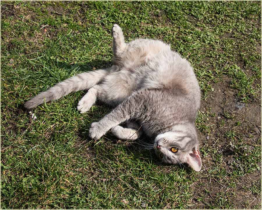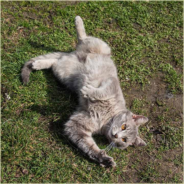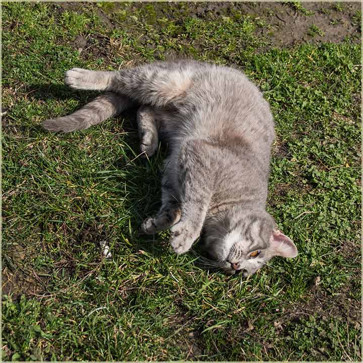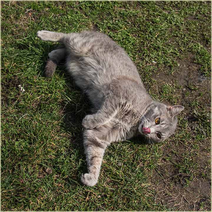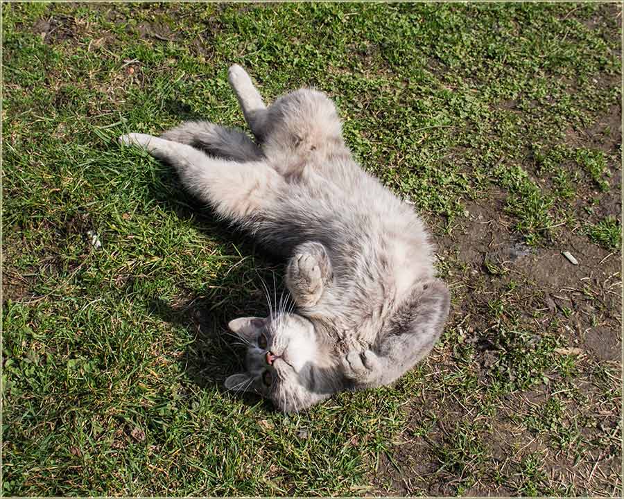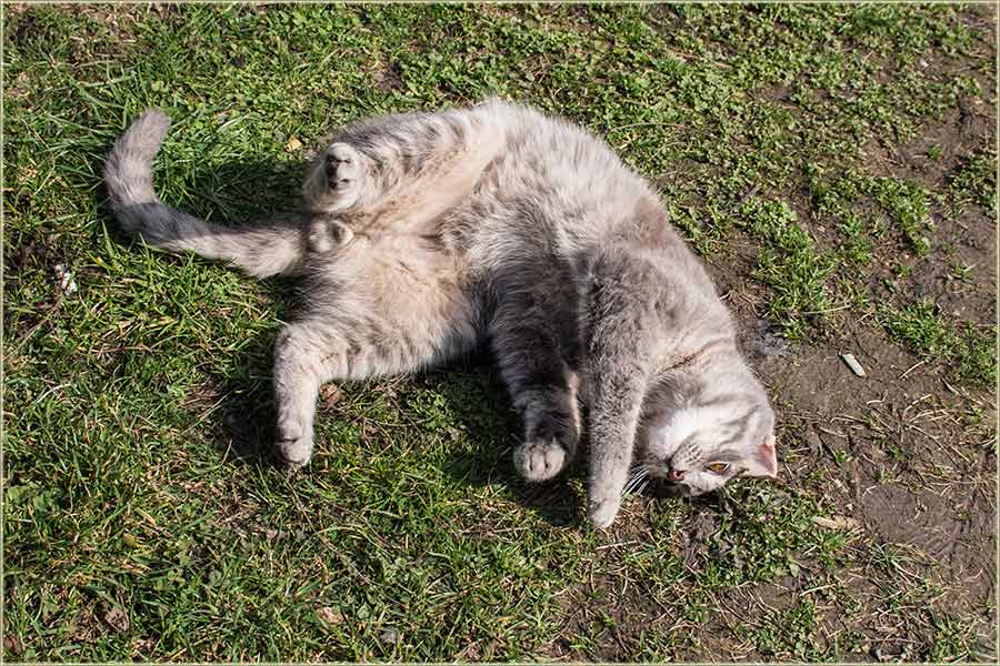 E, kad' u proleće "udari Cunce, ondak voledu" da se "izležavadu diGuđ" u "avliju", pa evo da vidite, kako to radi, jedan naš, novomiloševački mačak...