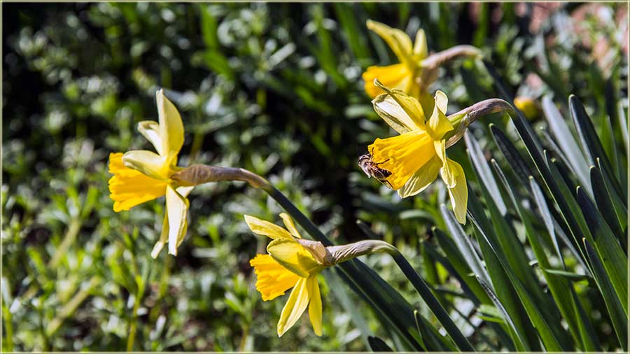 Opis: Narcisi su jedan od vesnika proleća, "kojim" se svi "obradujedu", pa i pčele naravno...