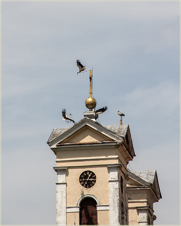 Da nastavimo priču..., elem, na "tornjove" naše, rimokatoličke crkve, su mirno "sedile" tri rode...