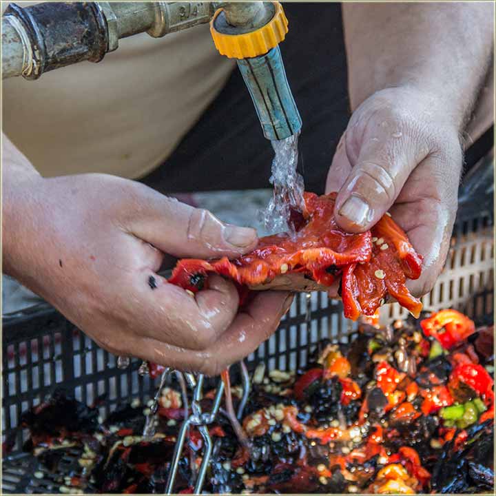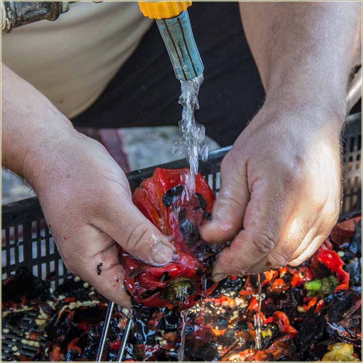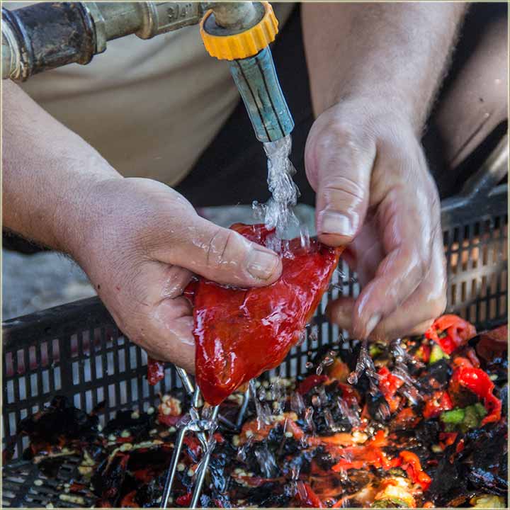 Ostaje Vam samo, da pod mlaz vode, "sas palcovima" nežno očistite papriku od ljuske, koja maltene sâma spada !!!
