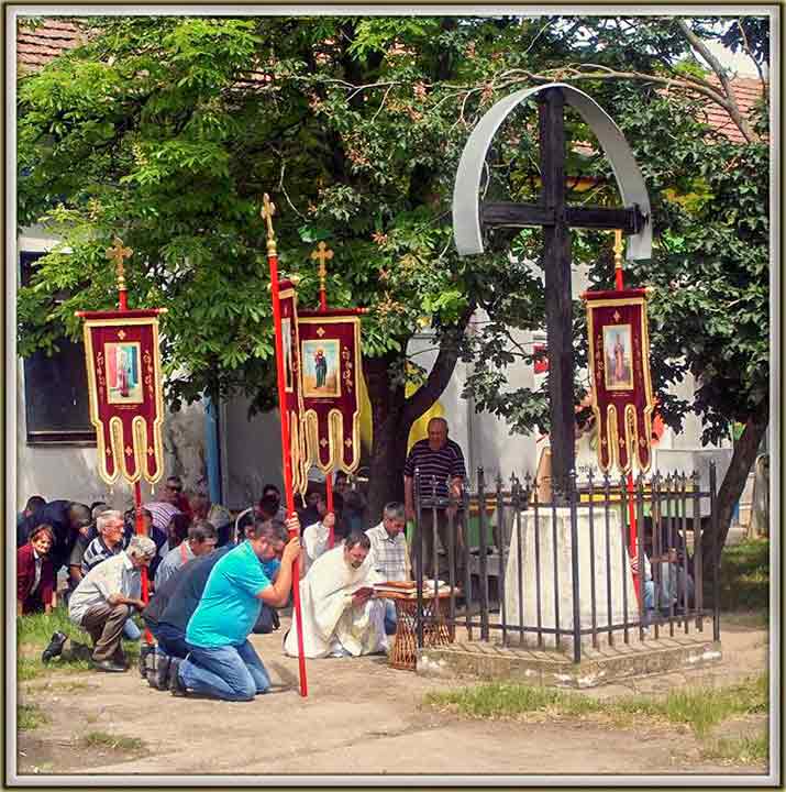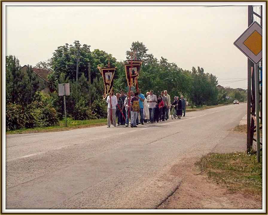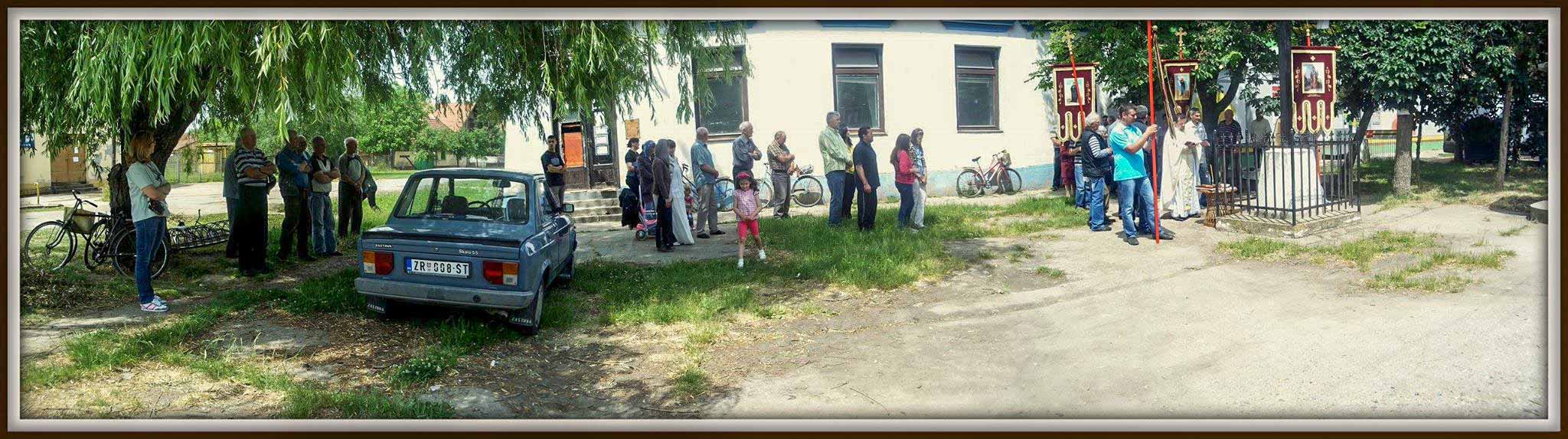 Odredište, gde je litija išla, bilo je ispred nekadašnje kafane "Kauboj", gde je pre sedam godina podignut krst. A podignut je jel je tadašnji paroh, otac Dragan Budak, hteo da obeleži tu zgradu, kao jedan od crkveni' objekata, koji je posle rata oduzet od crkvene opštine Dragutinovo. Inače, to je bila jedna od šest školskih zgrada, u kojima se do polovine prošlog veka, izvodila nastava.