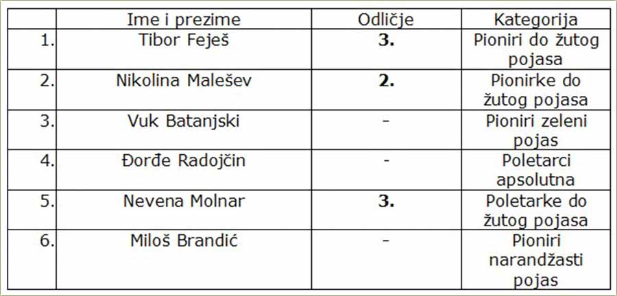 Takmičari, koji su zauzeli neko od prva tri mesta, su ostvarili još jedan od uslova, za učešće na Balkanskom šampionatu za decu, koji će se održati u Herceg Novom od 29. do 31. maja ove godine.