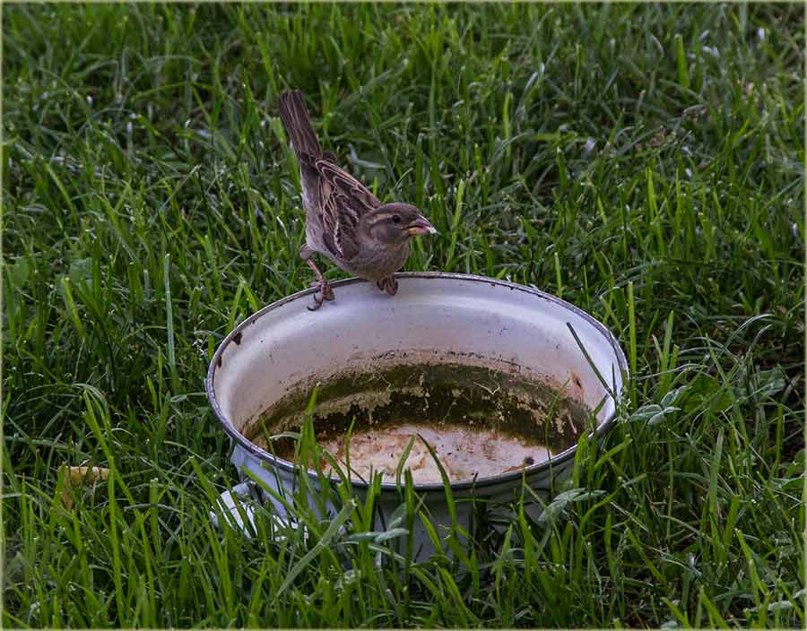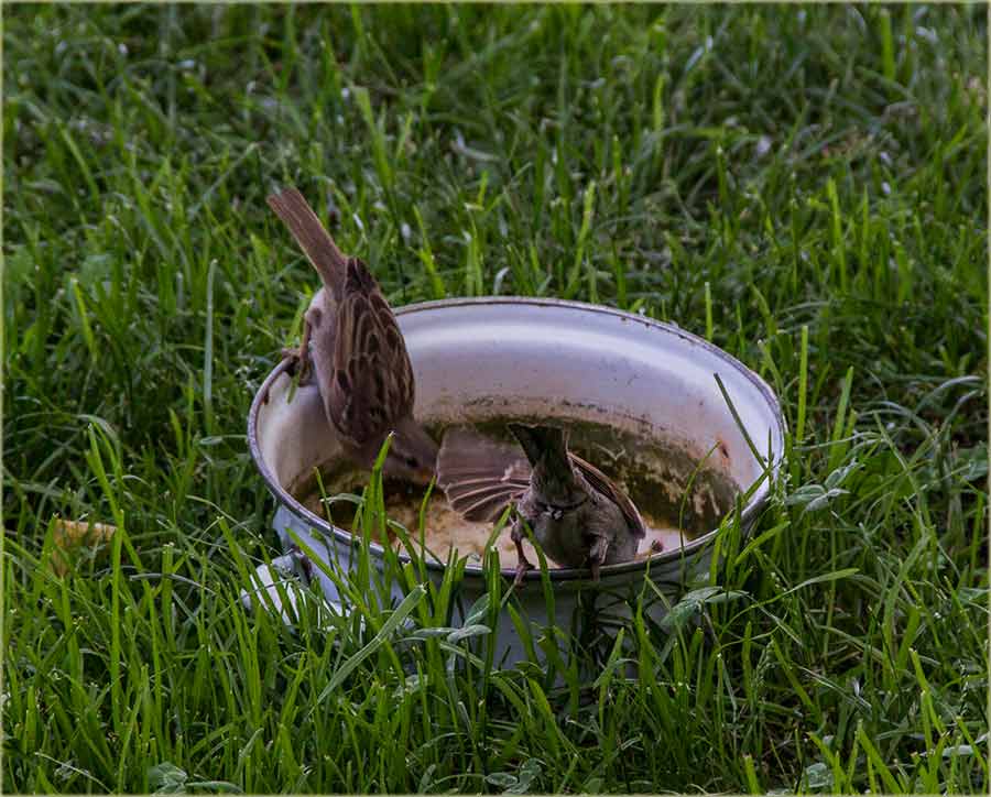 E..., čim je mačak zaš'o "izaKuće", evo ga naj'rabriji, međ' "vrabce", je "sletijo"...
