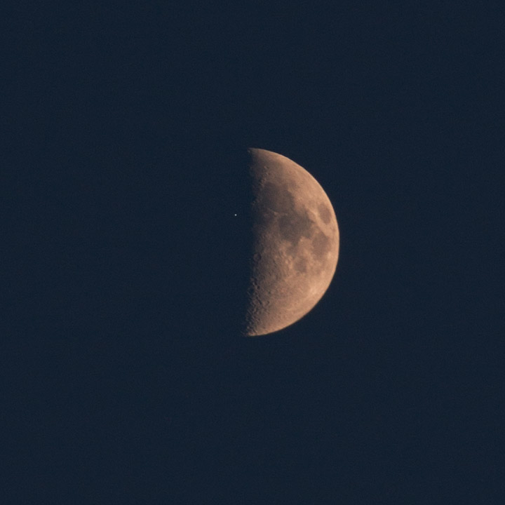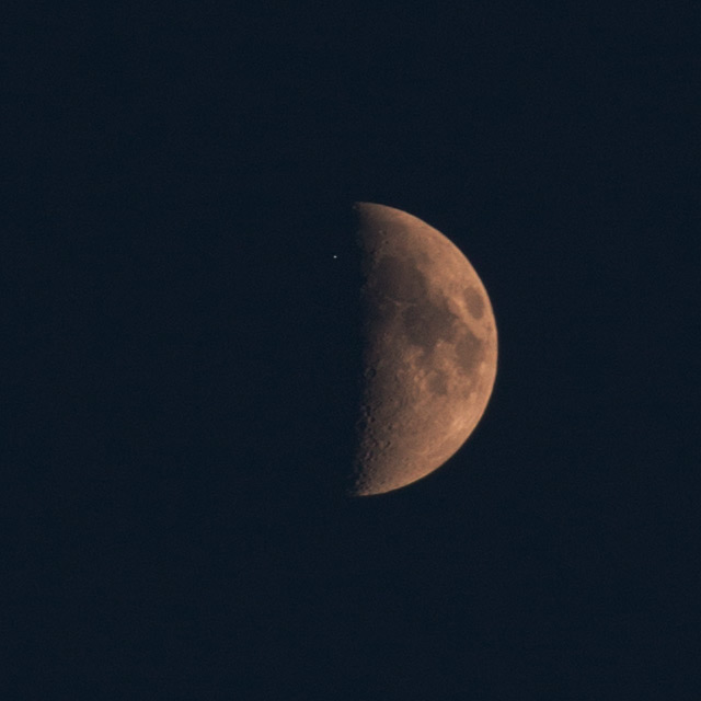 E, al' kad' sam, "kav razvijo slike", na "prvu" sam "primetijo" malu, belu tačkicu, levo od sredine Meseca...