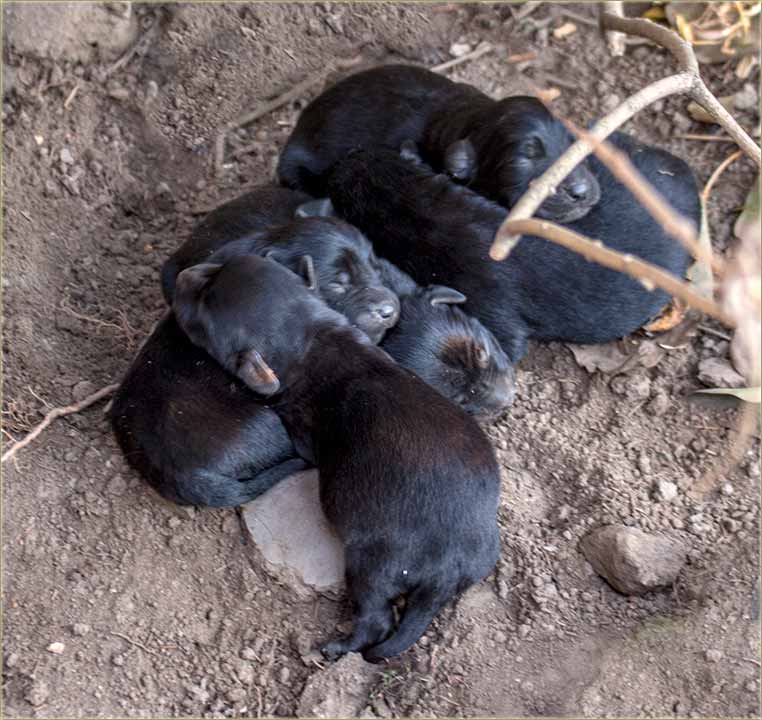 Ima pet lepi' štenâca, koje "zdravo, jâko" čuva i o'ma' "zaRêži", kad' im se priđe, tako da sam jedva usp'o da i' "uSlikam", ovako na "gromilu"...