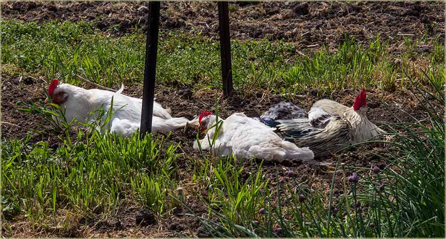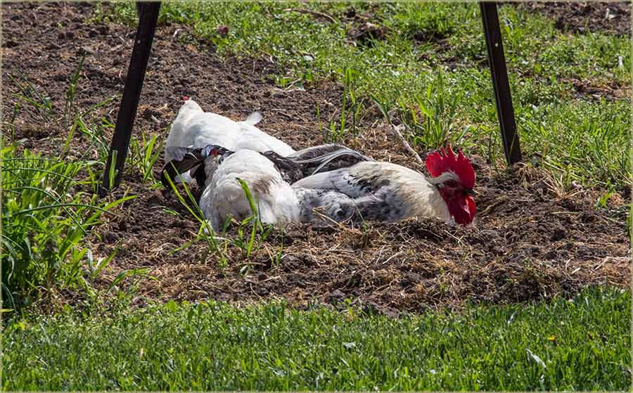 Pet'o je naš'o od "Cunca uGirajnu", suvu i "mekanu" zemlju "uBašću", pa ju je "sas" kandžama "razgrno" i "ondak" je onako "sas" sitnim "doZivanjom, naRedijo" kokoškama, da "dođedu" i "legnedu" pored njega...