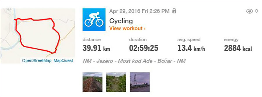 Iz "njega" možete "viditi" da sam "prišo" 39,91 km, za 02:59:25, uz prosečnu brzinu od 13,4 km/h i da sam navodno "poTrošijo" 2884 kcal !!!