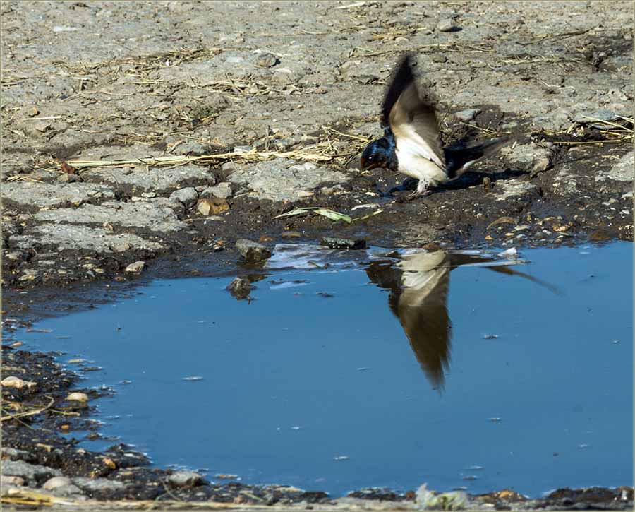 Lasta "saSlike cigurno" tako nešto radi, to jest', 'opra'lja "gnjizdo", jer je našla građevinski materijal, "mâlko" ga je pokvasila "uVodu" ( što nisam usp'o da "uSlikam", al' Vam "zaTo" kažem... ) i spremila se da odleti...
