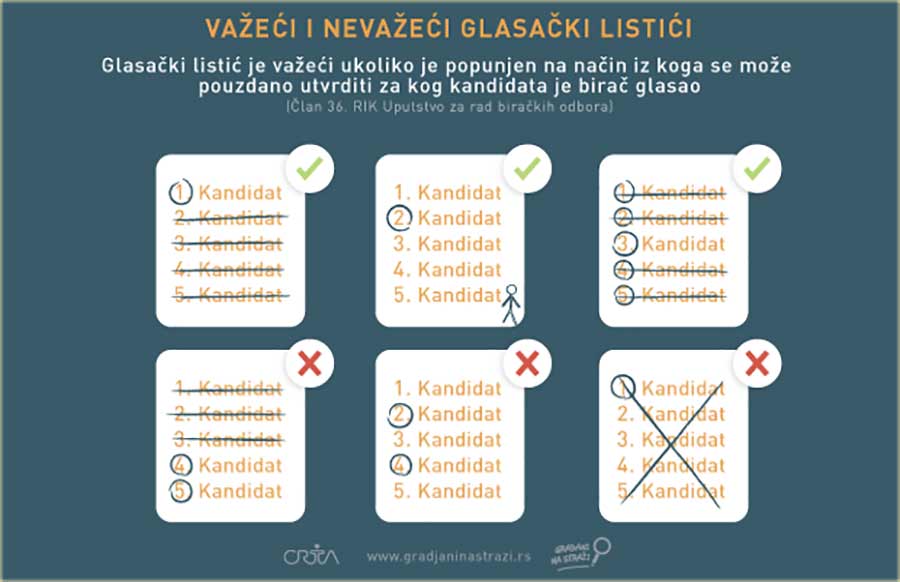 Pogledajte primere važeći' i nevažeći' listića...