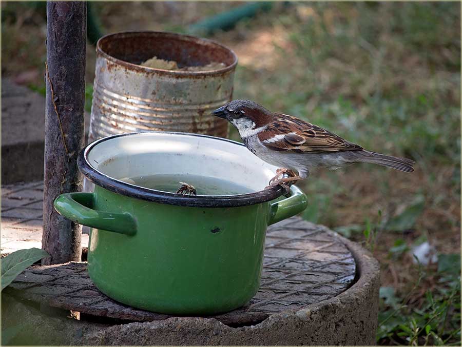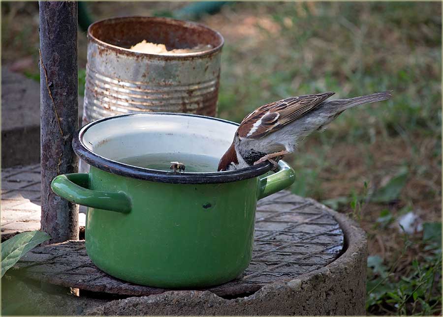 - Napuni "vrjom"..., zbog vrabaca..., jer oni "neMožedu" da "pijedu" vodu, ako je nivo ispod !!!
