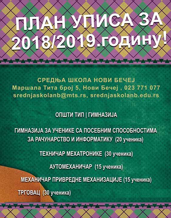 I još "jedared" da ponovim budućim srednjoškolcima - upiš'te se u Srednju školu u "Novim" Bečeju !!!